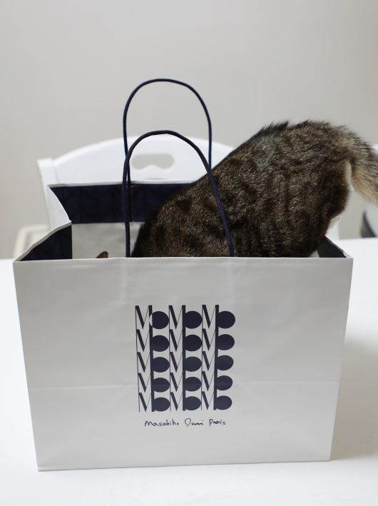 紙袋が登場すると するりと吸い込まれるアミ姐さん。(まいど)ひさしぶりのちょうどいい感じの紙袋に満足ですか、そーですか。紙袋に入っていたのは···