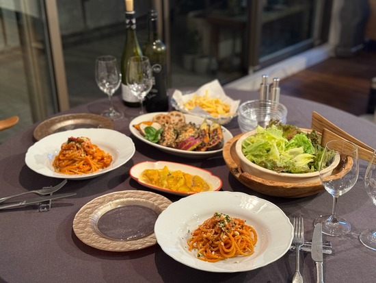 三崎マグロホホ身の香草焼きとベーコンのパスタの夜ごはん