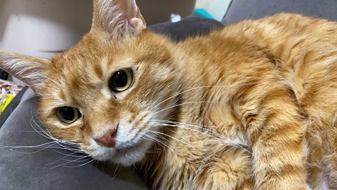 「猫の社会経験」が豊富だと、その分、猫も表情が豊かになると思ってます。こちらは2021年の釿汰。翡文を睨みつつ、チャー坊に甘えを譲ってる顔です。···