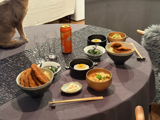 昨日の夜ごはんです。昨日はソースカツ丼定食にしました。だんなさまがテレビで見かけてちょうど食べたかったと思ってたそうで、これを見たらすごく喜···