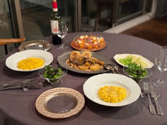 ミラノ風リゾットと、グリルチキンのきのこクリームソースとかの夜ごはん