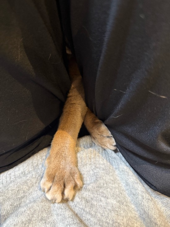 股の間から、手が出てきた。セーター引っ張ってる( ¯ᒡ̱¯ )こんなことをするアホちんは、わか坊しかいないですね。うん。やっぱり。股の間からのぞいた···