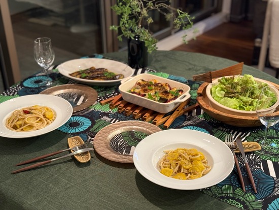 栗のペペロンチーノと秋刀魚ロールグリルとかの夜ごはん