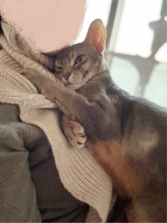 ぼくちんの抱っこ要求は、日々激しい。ソファーに座って本を読んだりスマホを見たりしていても、腕の間をグイッと割って無理矢理抱っこされに来る。キ···