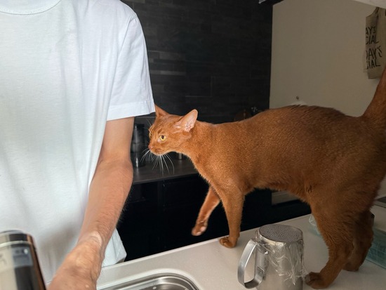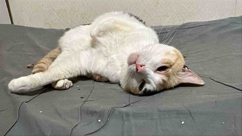 それは、ひめちゃんです。飼い主が作業やストレッチ、他の猫の手当てなどをしていると、ひめちゃんは、かまってー!かまってー!と熱心にアピールにす···