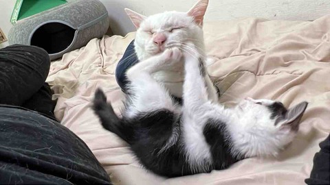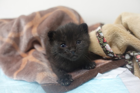 2023年秋の保護子猫・クロイモーズ。未だに画像だけだと見分ける自信がありません。こちらが保護5日後くらい。黒いので表情がどうしても目しか分かり···
